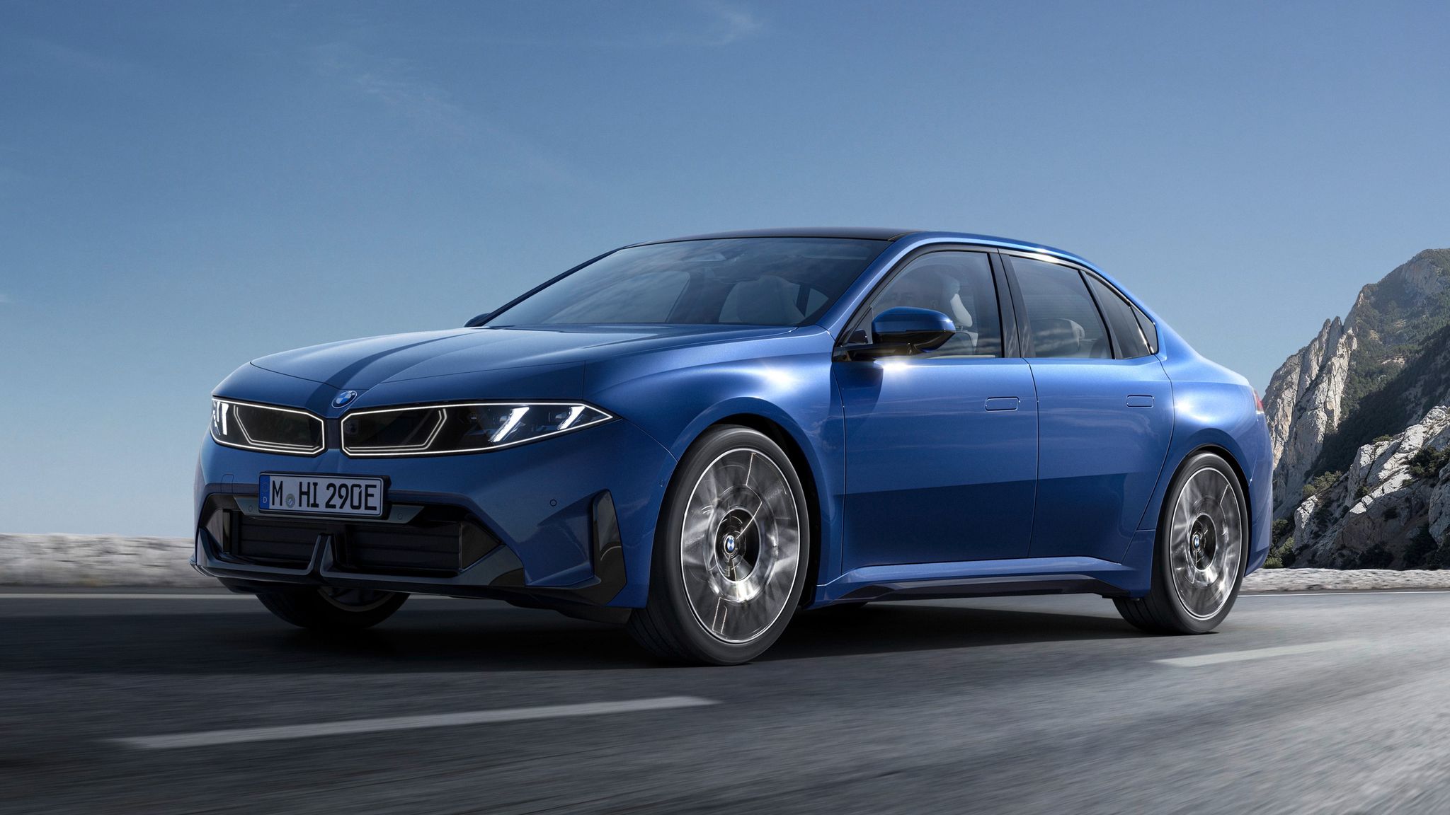 Styling draws on 3 Series heritage. BMW designers cite the shark-nose front angle of the 1980s E21 and E30, plus the rear wheel arch lines of the E36. The traditional kidney grilles are gone, replaced by wide black panels with four bands of LED light.